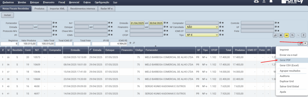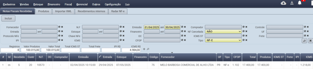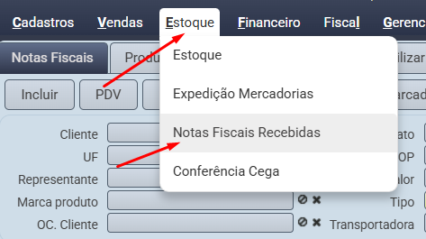 Passo 1 : Acessar Estoque > Notas Fiscais Recebidas